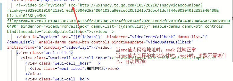 3、将官网源码中的视频下载到本地,通过选择本地文件,给src赋值后(小程序中显示此地址为http://tmp/.....),seek功能不正常,每次调用后,均回到视频起始处开始播放(开发工具与真机均如此)。