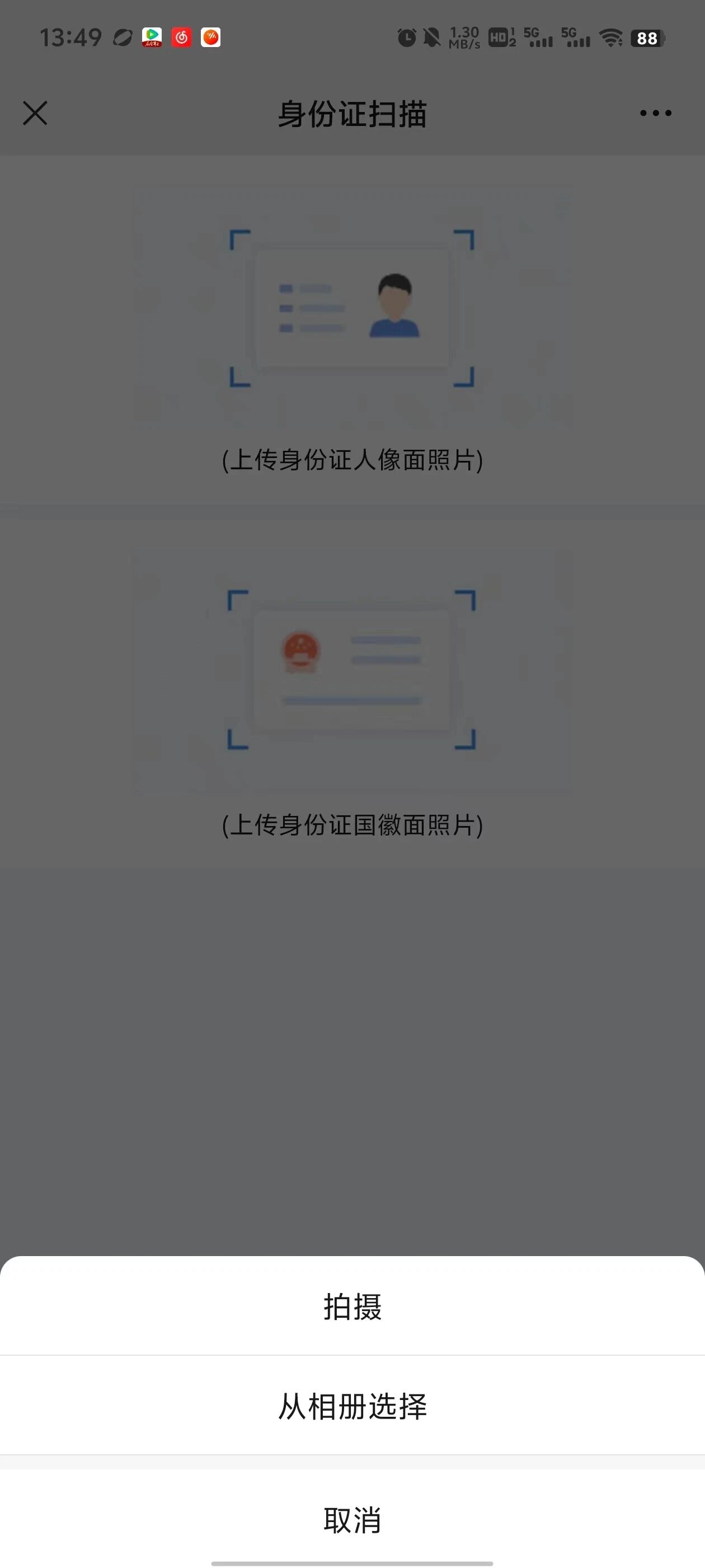 点击上传时->点击拍摄 :可正常触发后续上传方法