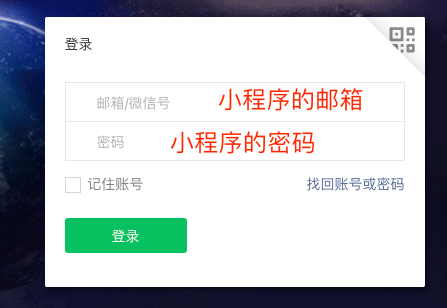 登录的时候选择「使用帐号登录」,要使用小程序的邮箱和密码。