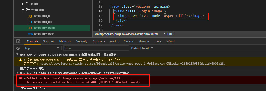 因为你image 的 src = 123 ,路径就是pages/welcome/123,