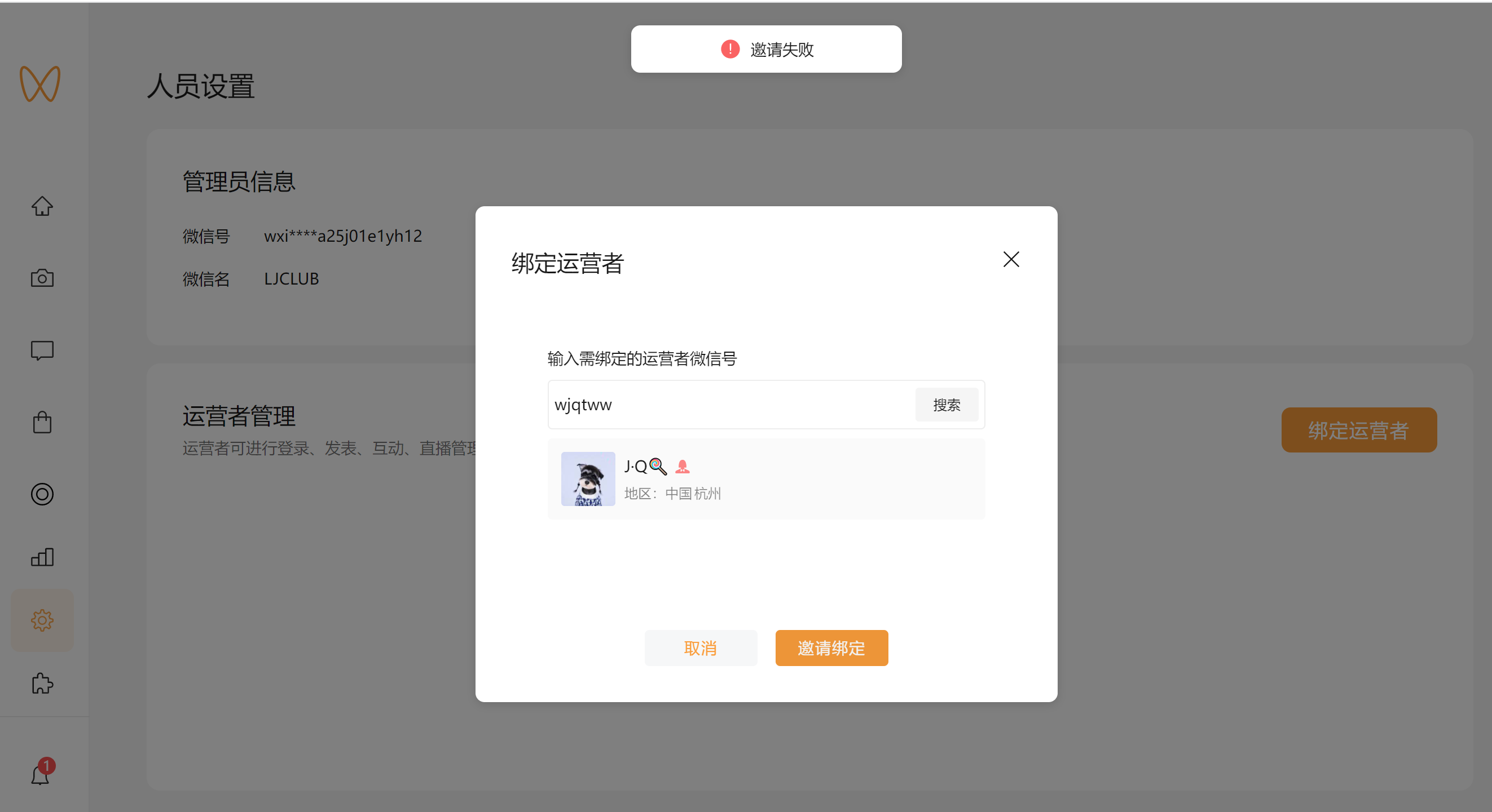 3、需添加为运营者的微信号(非手机号):wjqtww