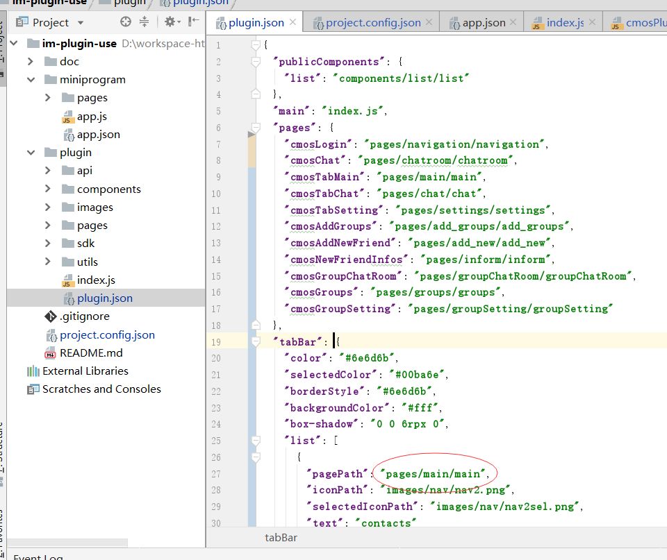 小程序 插件开发(插件里面有页面,插件里用到tabBar),插件中配置tabBar没见有文档,现在在调用 wx.switchTab(xxx) 提示 {"errMsg":"switchTab:fail can not switch to no-tabBar page"} 目前不知道这个tabBar配置应该是配置到哪儿?(我截图的配置应该不对,提示上面的异常)或者支持不支持这种方式。