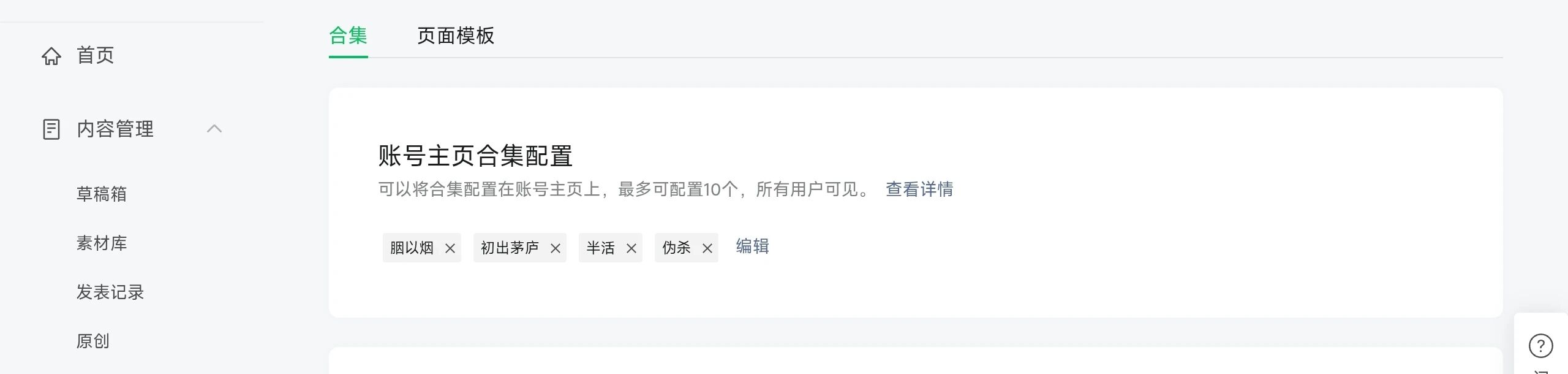 另外公众号主页里没有我已经配置好的合集名称,图片如下: