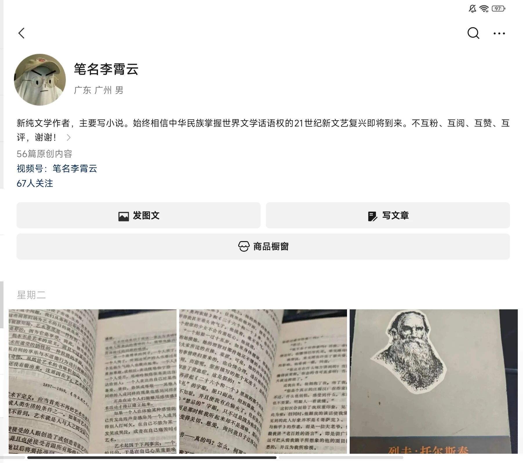 公众号名称:笔名李霄云 ID:wx9c7d9e61310366a1 搜索词:笔名李霄云 图片: