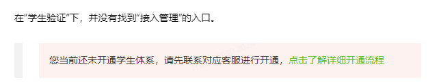 在“学生验证”下,并没有找到“接入管理”的入口。