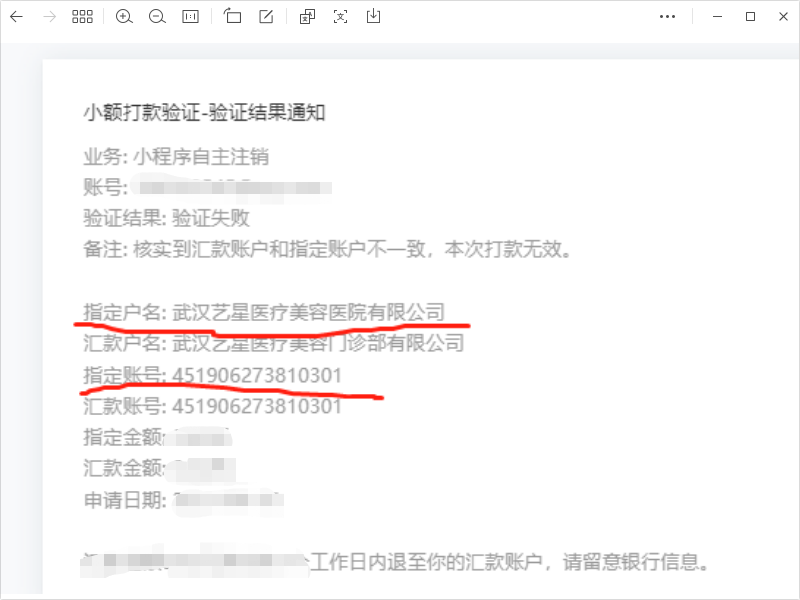 请问下小程序注销,打款验证报错,只提示打款的指定账户不一样,没有提示打款的指定账号错误,这个是什么原因?再做打款验证,更改打款账户户名,打款账号是按照提示的不变吗?还是报错的提示有问题?还是说一个账号可以绑定多个账户上的
