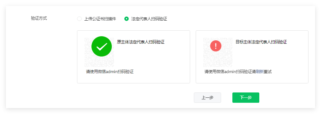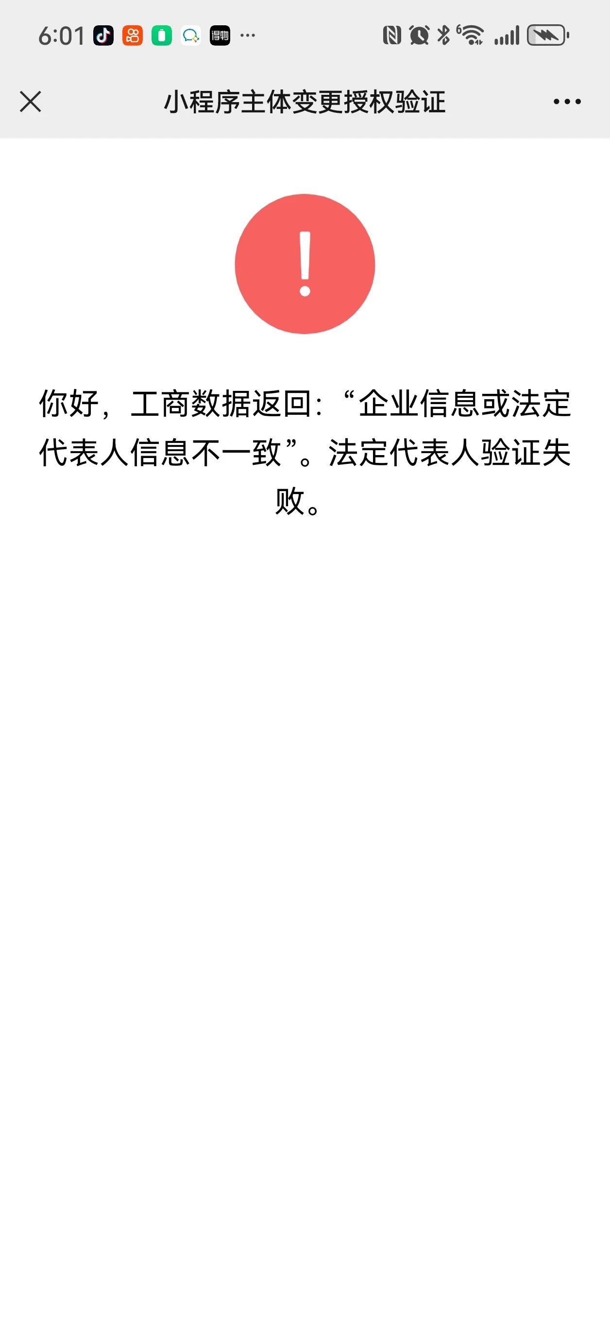 主体变更的时候一直提示失败,但是法人确认没问题,新主体和旧主体法人都是一个人。扫原主体成功,扫新主体就失败