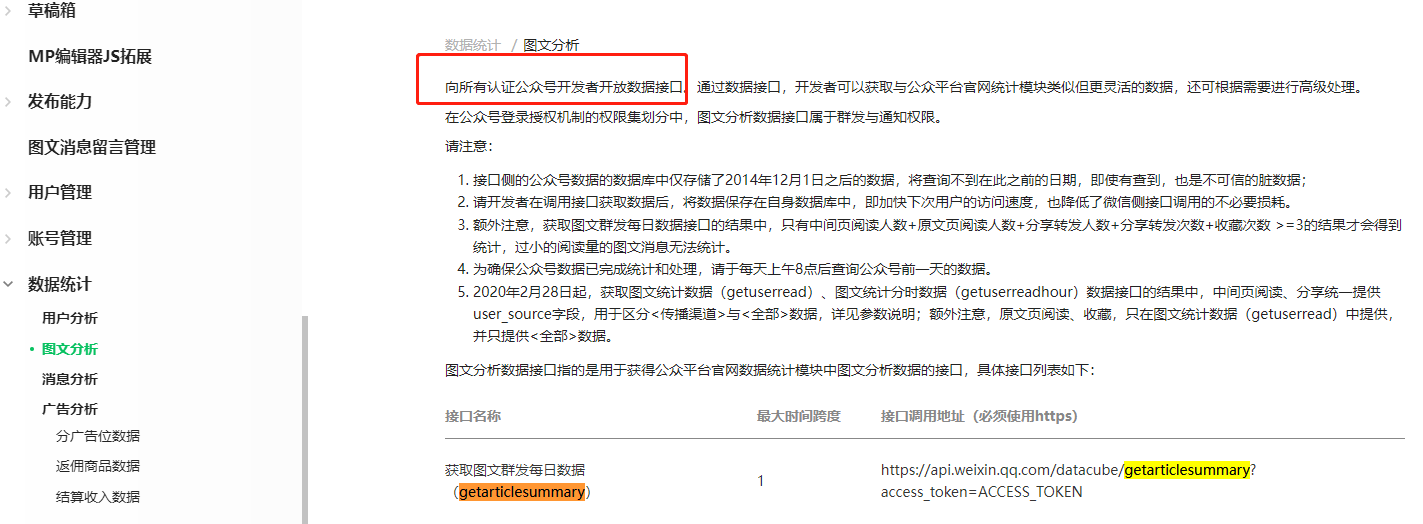 调用https://api.weixin.qq.com/datacube/getarticletotal?access_token=%s