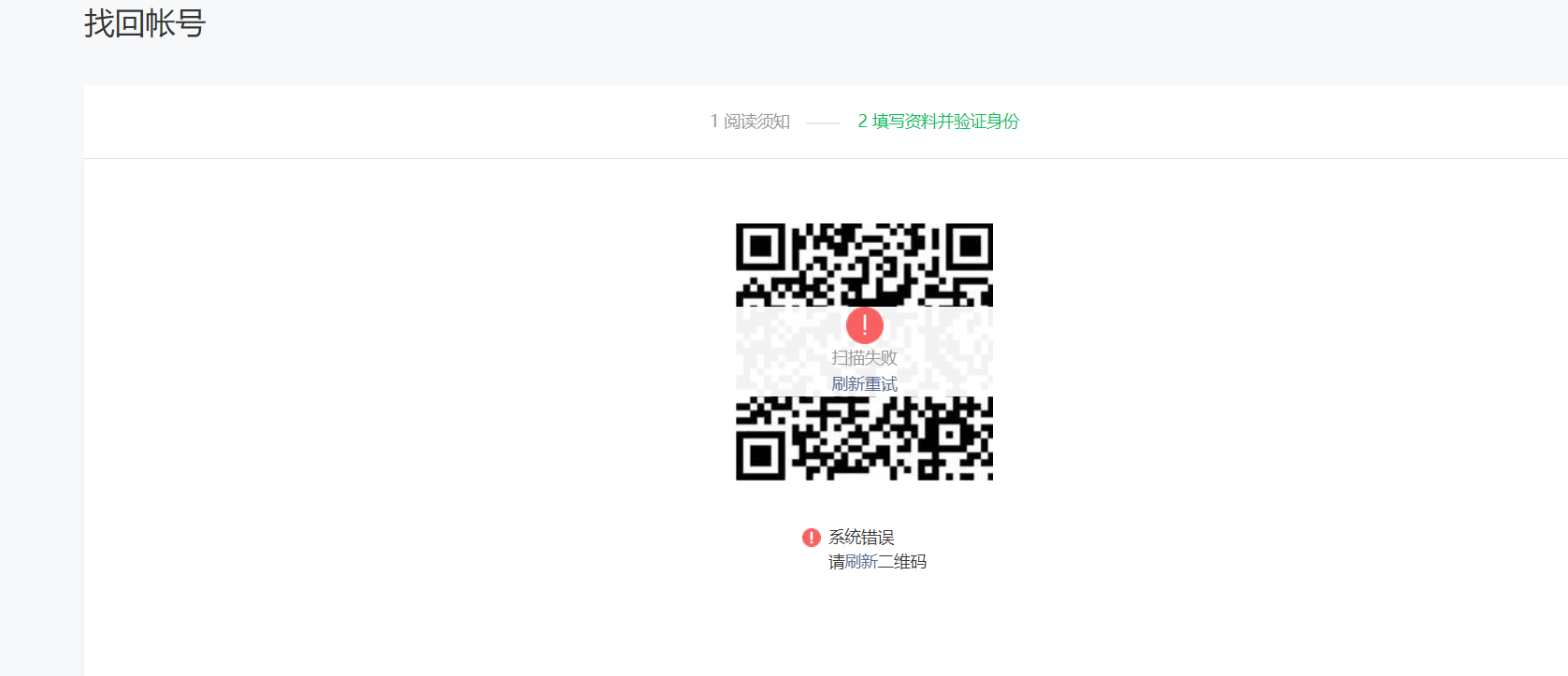 微信公众微信公众号长期未使用被冻结,找回账号的时候需要扫码,但一直显示系统错误
