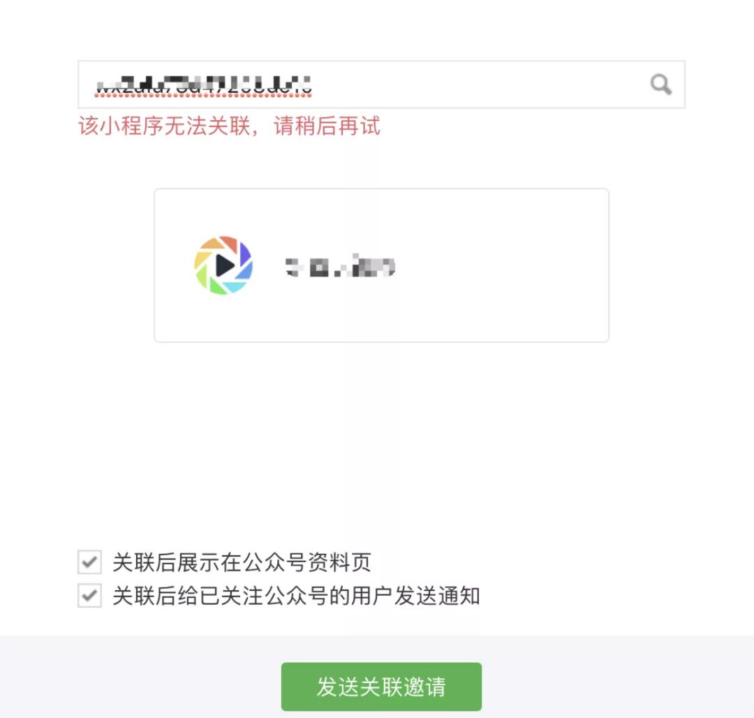我自己的个人公众号关联自己的小程序也不可以,有人出现过吗?
