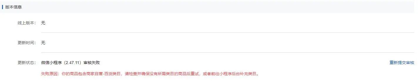 小程序是为销售医疗器械的店铺,审核需要增加百货类目,这就需要去申请办理食品经营许可证,市场监管部门也会觉得莫名其妙吧?