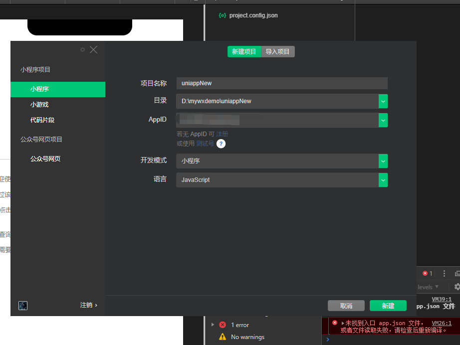 试了好几遍,新建项目都只有project.config.json工程文件。请问这是什么问题。