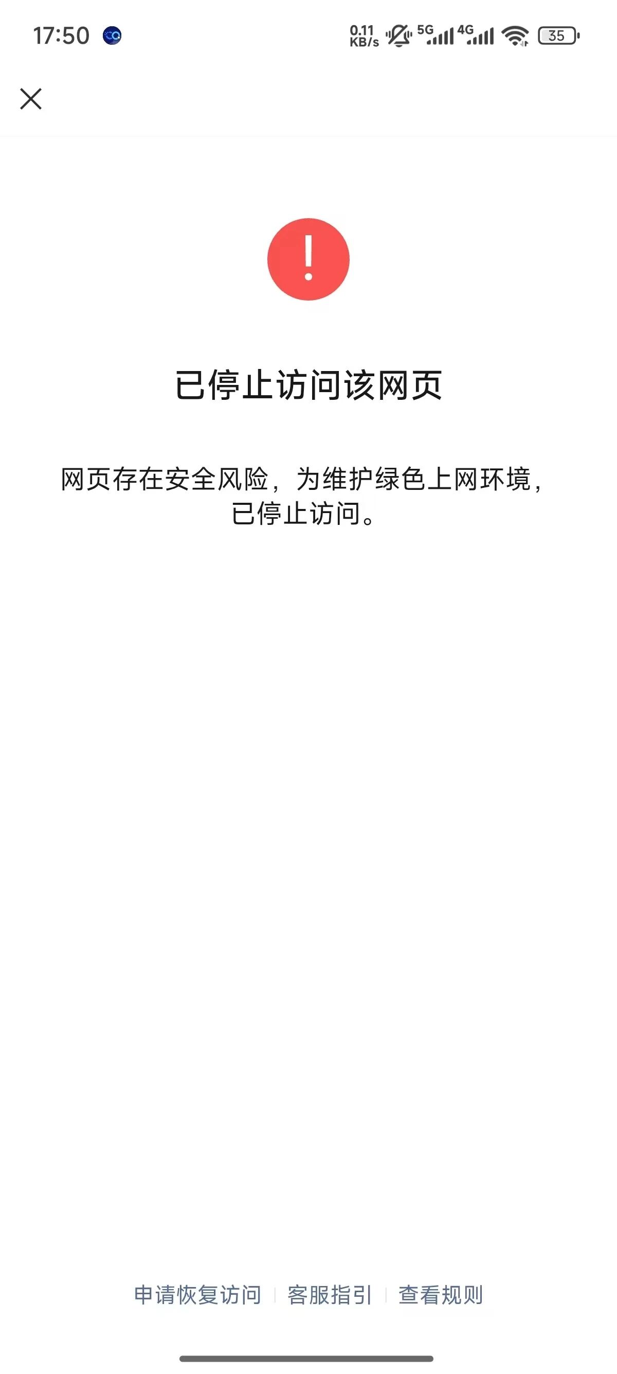 微信扫一扫跳转小程序,提示已停止访问该网页,网页存在安全风险。域名添加白名单