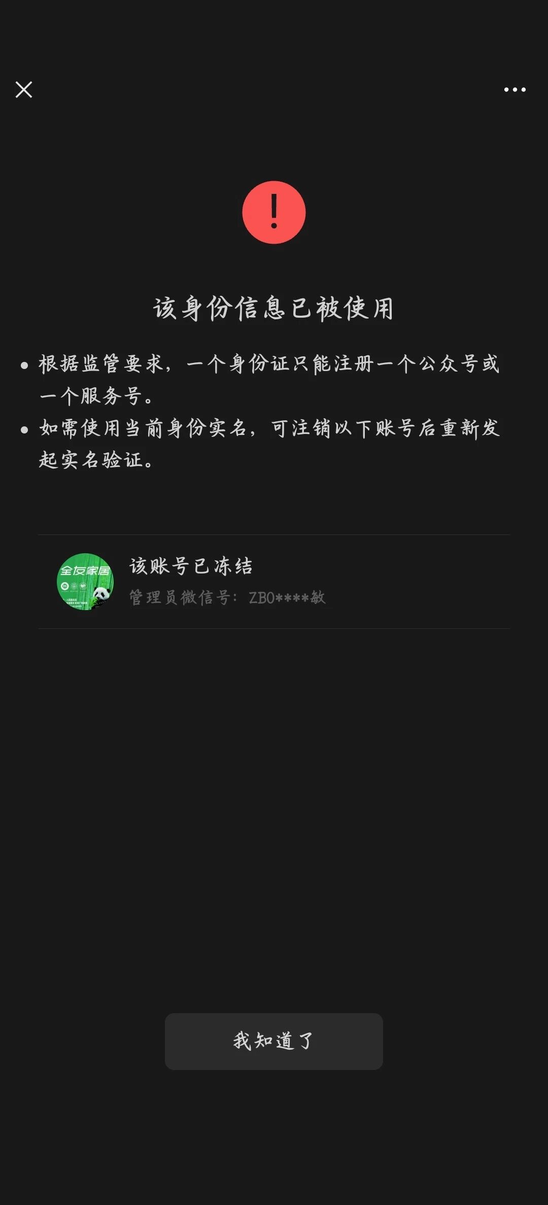 怎么注销被冻结的公众号。 需要释放出来实名认证