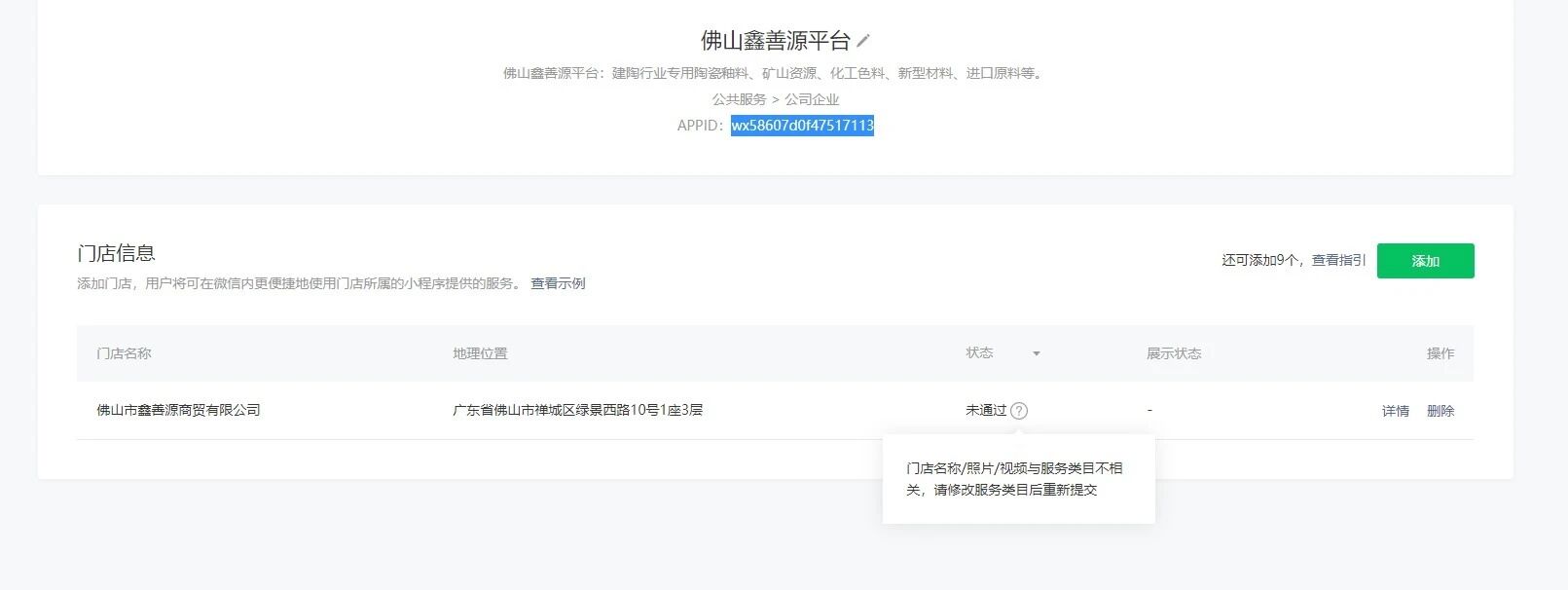 我这个ID小程序门店在修改编辑门店小程序的时候无法选择类目。