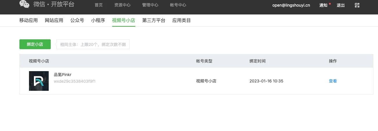 如果想获得视频号小店的unionid,需要先在微信开放平台里绑定。