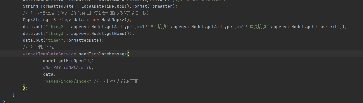 { "touser": "OPENID", "template_id": "ngqIpbwh8bUfcSsECmogfXcV14J0tQlEpBO27izEYtY", "url": "http://weixin.qq.com/download", "miniprogram": { "appid": "wx9183c0f44097c93", "pagepath": "pages/index/index" }, "client_msg_id": "MSG_000001", "data": data }