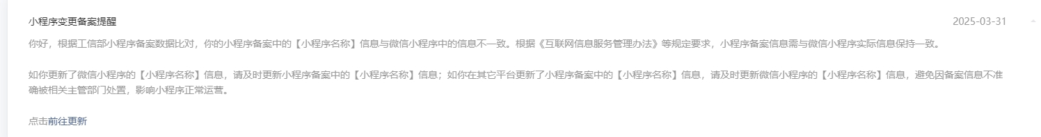 我的微信小程序修改过名称但是没有更新备案,备案要求在4.1之前通过,否则会被平台清退,我在3.31提出的备案更改申请,是否会被清退