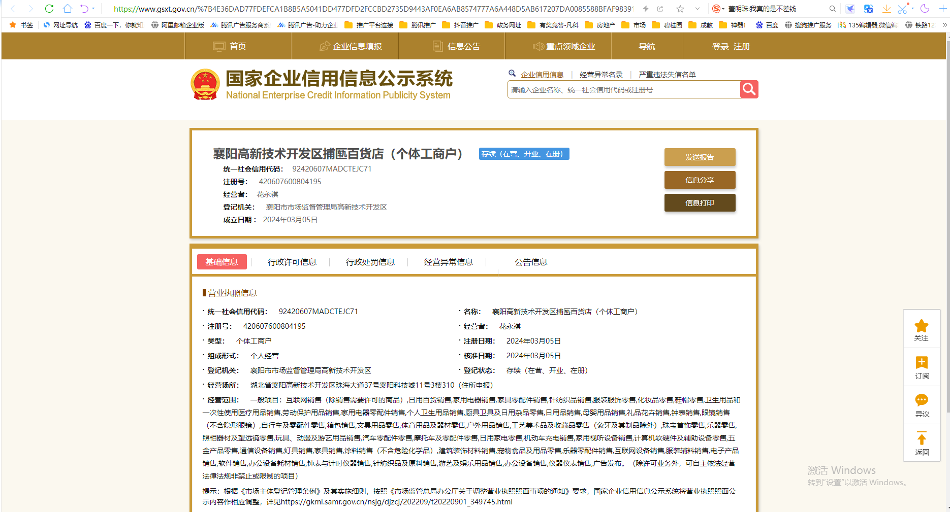 名称: 襄阳高新技术开发区捕匦百货店(个体工商户)