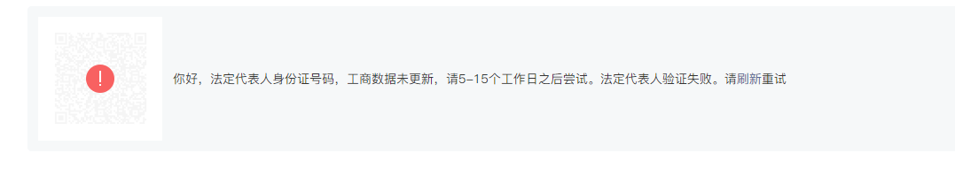 我公司这个微信公众号也出现这样的情况了显示“法定代表人身份证号码,工商数据未更新,请5-15个工作日之后尝试。法定代表人验证失败。”我也不知道怎么回事。。。。。