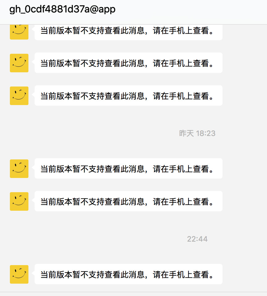 当我电脑登录微信时,电脑能收到一条奇怪的消息,这时候,手机还是无法收到模板消息。电脑收到消息如截图所示