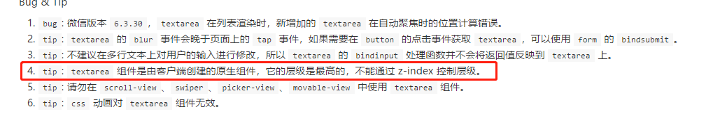 文档里有说,textarea 和 video 等为原生组件,层级最高,