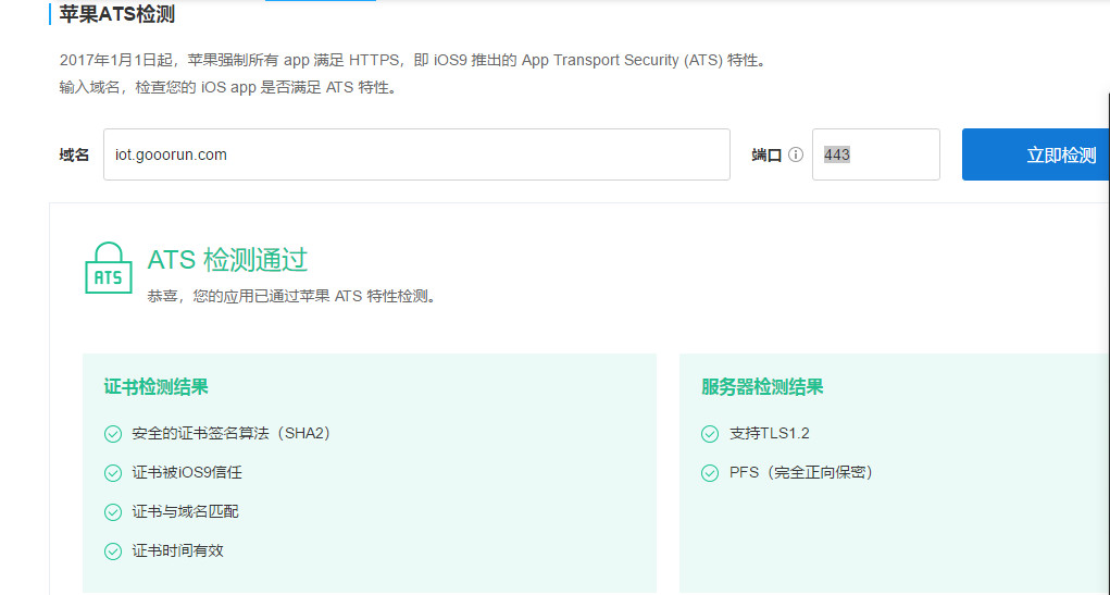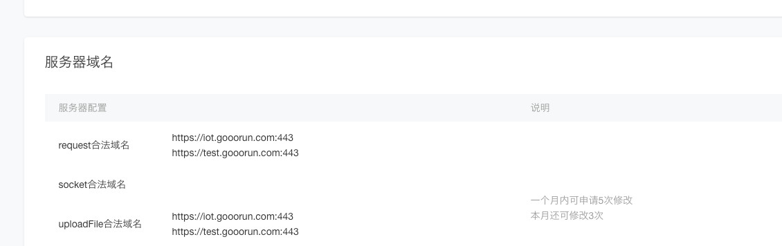 域名https://iot.gooorun.com:443在小程序管理后台也配置好的,域名备案通过很多天了: