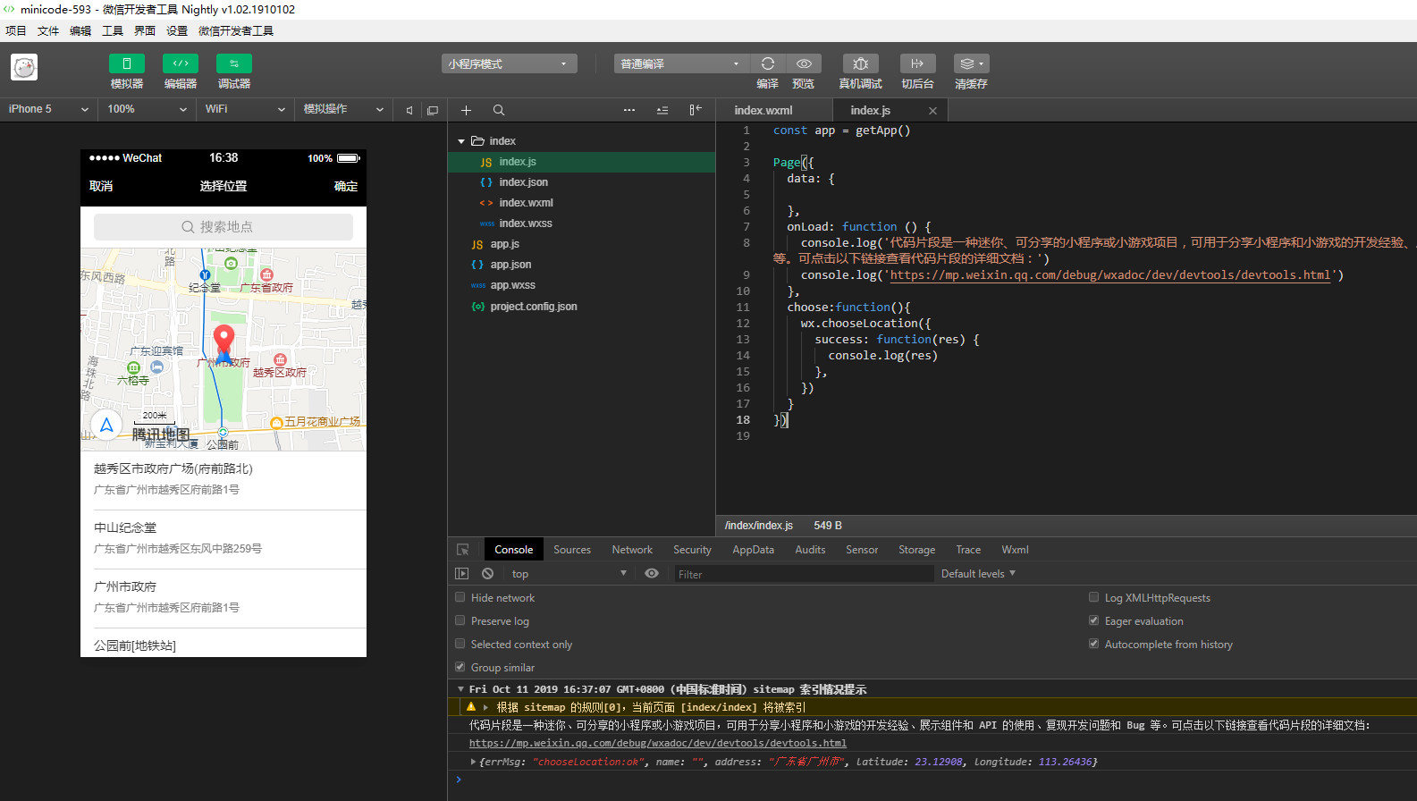 开发工具内(版本:v1.02.1909111)操作: