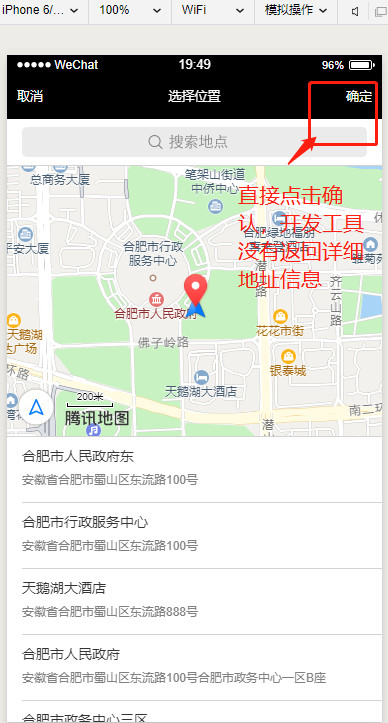 点击后,默认是选中第一条的,直接点击完成,返回的结果是没有省份的