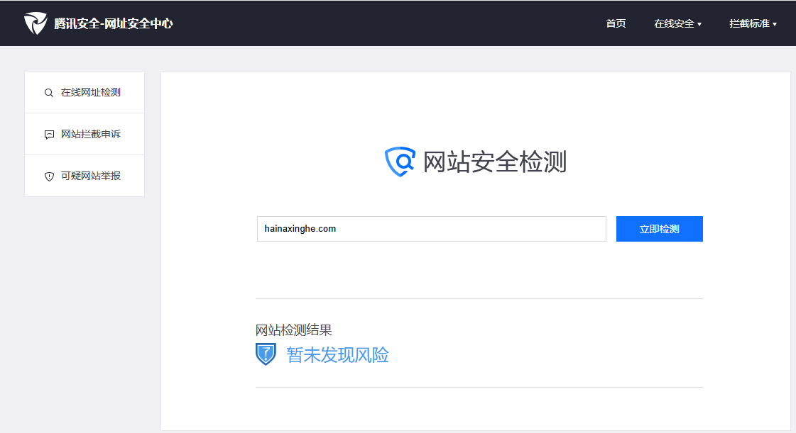 这个是腾讯网址安全检测截图