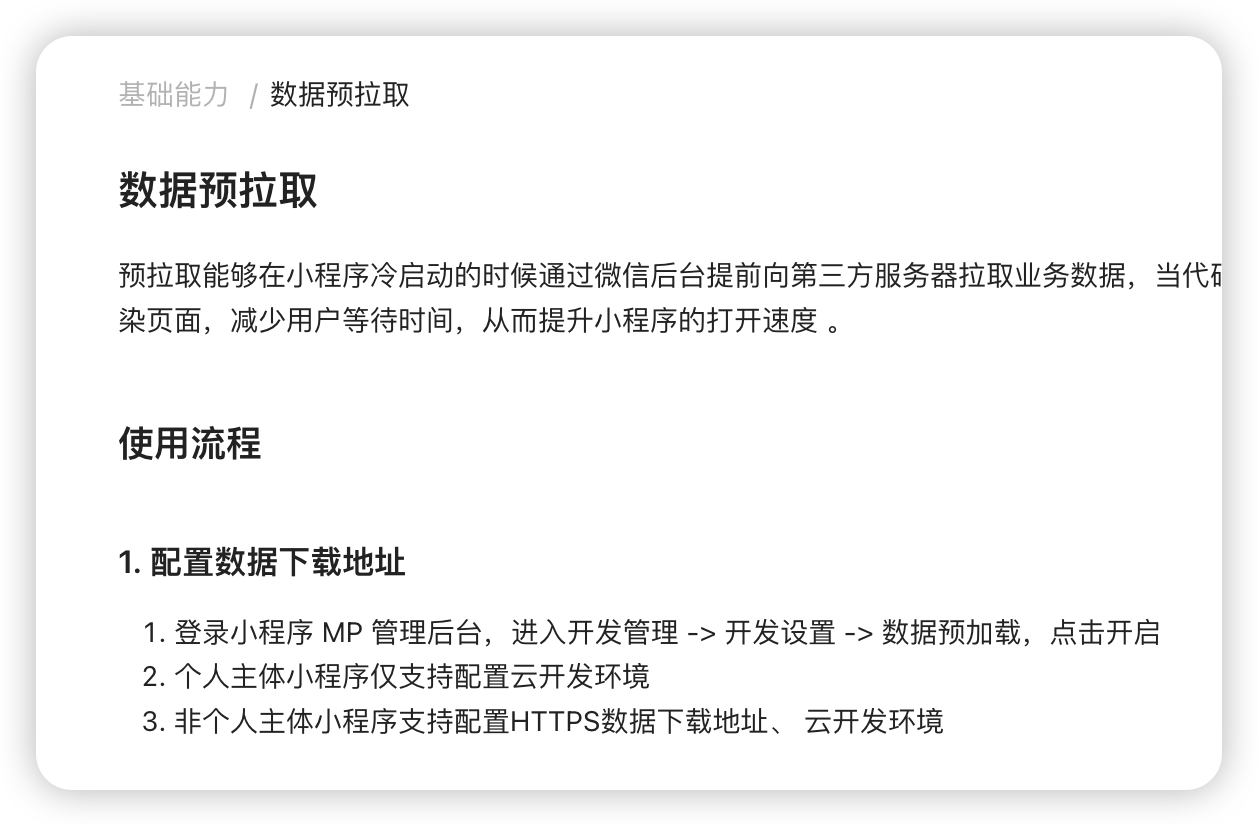 https://developers.weixin.qq.com/miniprogram/dev/framework/ability/pre-fetch.html