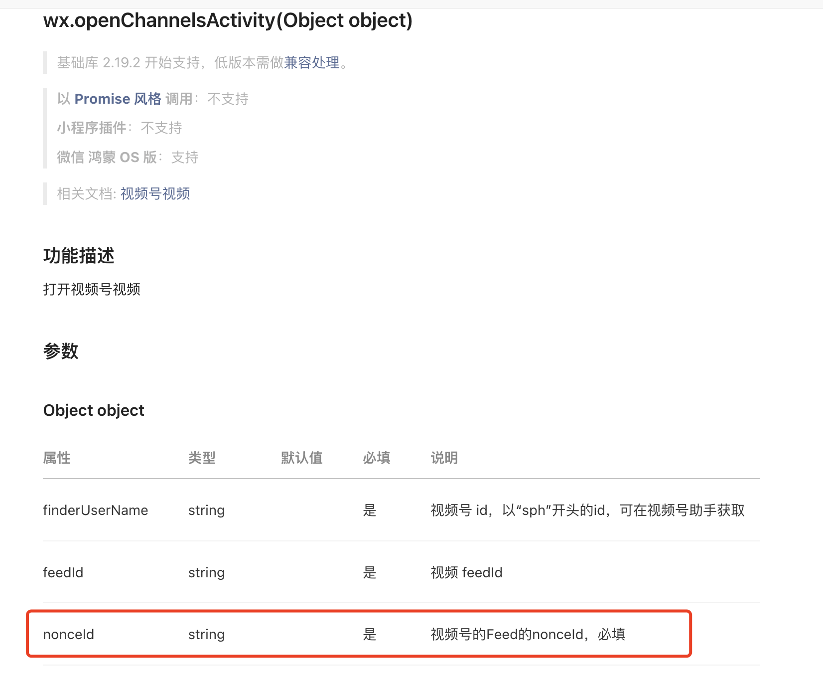 微信小程序需要跳转打开个人的视频号,文档里要求必须传递nonceId,但是没有说明这个nonceId如何获取?请问在哪里获取如何获取呢?