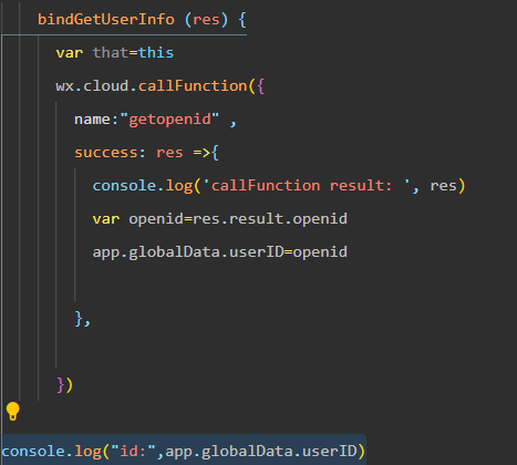 我想通过云函数获取用户的openid,再把值传给全局变量globalData中,可是输出的确实空的。
