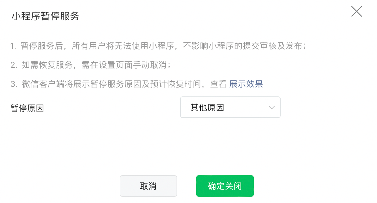 暂停原因选择「其他原因」。