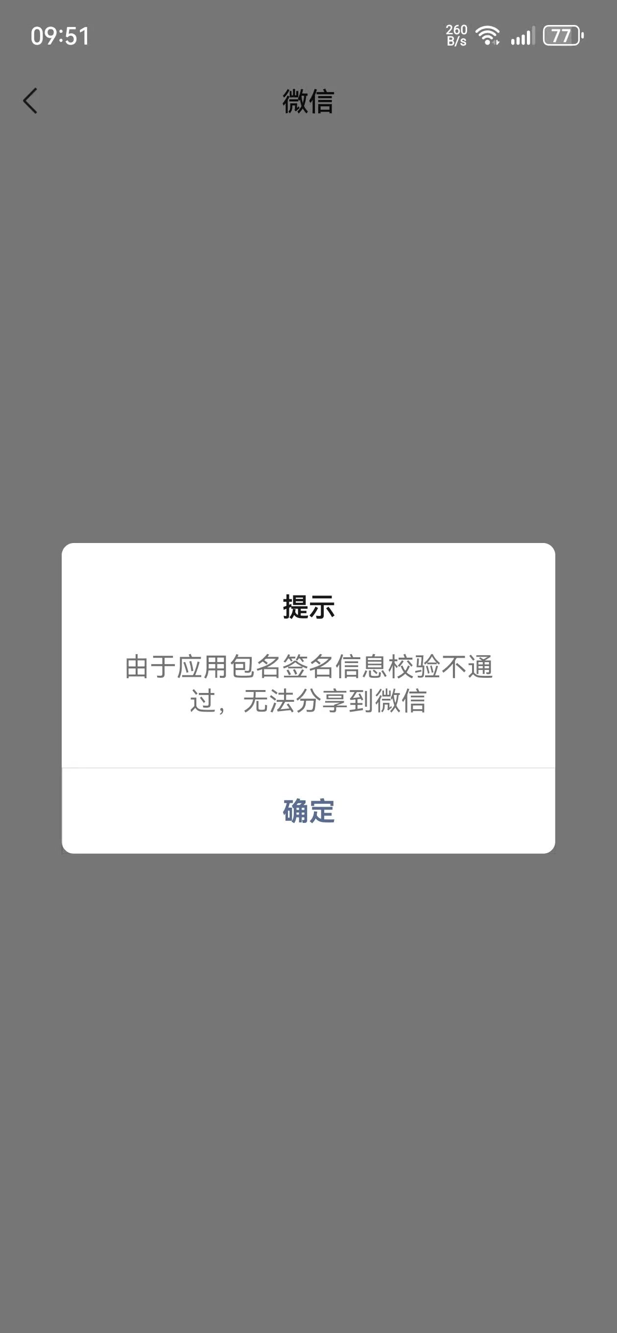 安卓应用拉起小程序失败,提示由于应用包名签名校验不通过,无法 分享到微信?