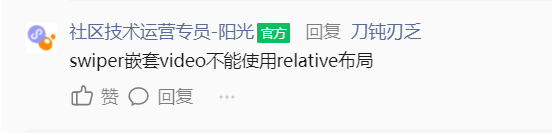 当video在如下结构时,swiper的父元素又设置position:relative,video的全屏播放时会展示video上面的元素