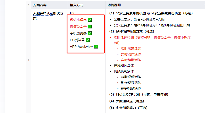 小程序有业务需求,对应人员需要做人脸核身及核验证件需求