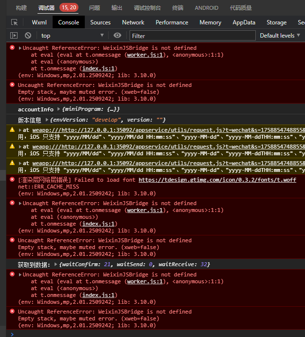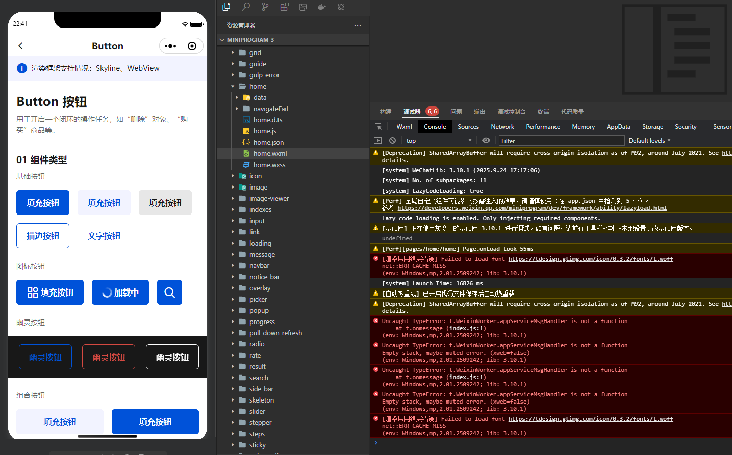 新建带有底部tab的小程序项目,例如【TDesign组件库模板】,点击打开任何非tab页,会报 Uncaught TypeError: t.WeixinWorker.appServiceMsgHandler is not a function 错误。