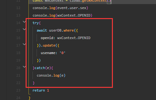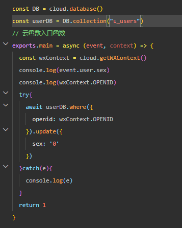 at u.exports.main [as handler] (D:\wechat\note\cloudfunctions\updateUser\index.js:17:8)