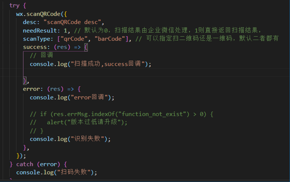 使用wx.scanQRCode接口,从相册中选择了一张模糊的二维码,安卓会触发success的回调函数,但是ios success和error的回调函数都不触发,直接关闭扫码页。