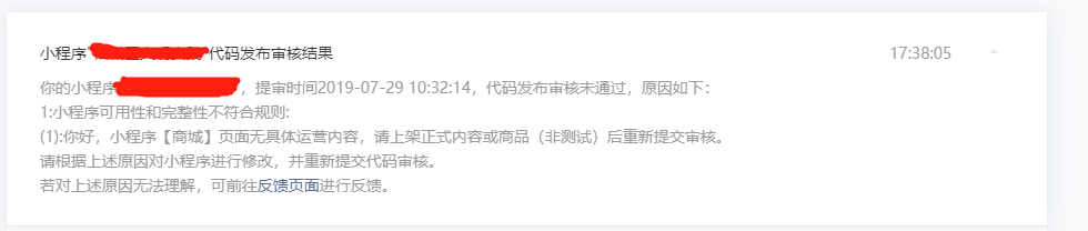你好,经核实,贵方小程序最新提审版本【积分兑换】版块有内容,请耐心等待工作人员审核