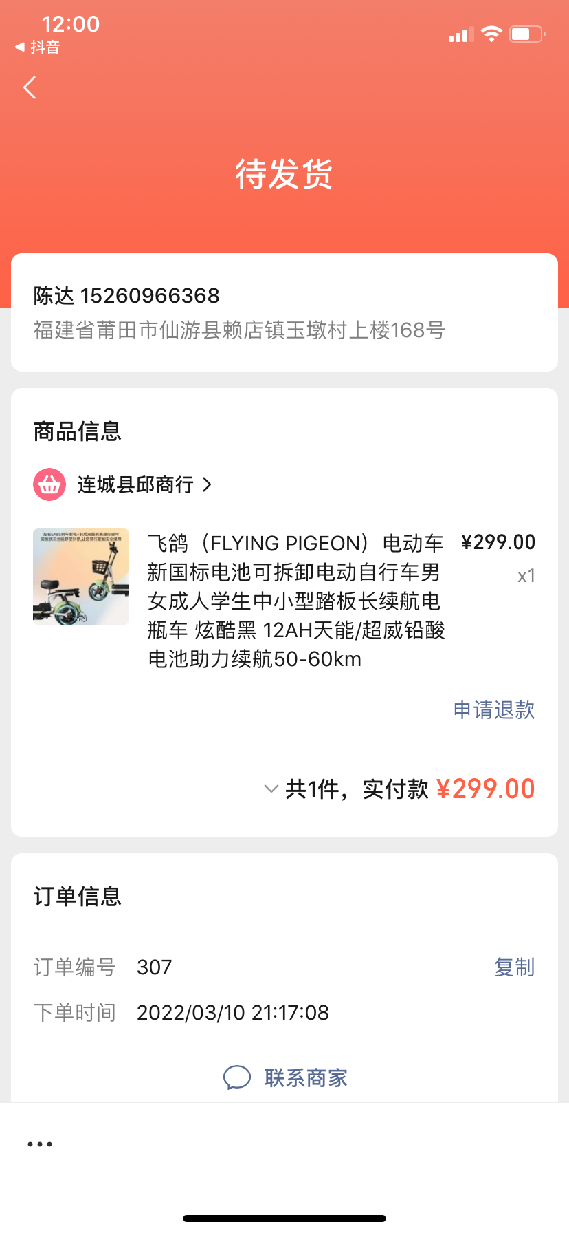 钱在商家,联系商家!