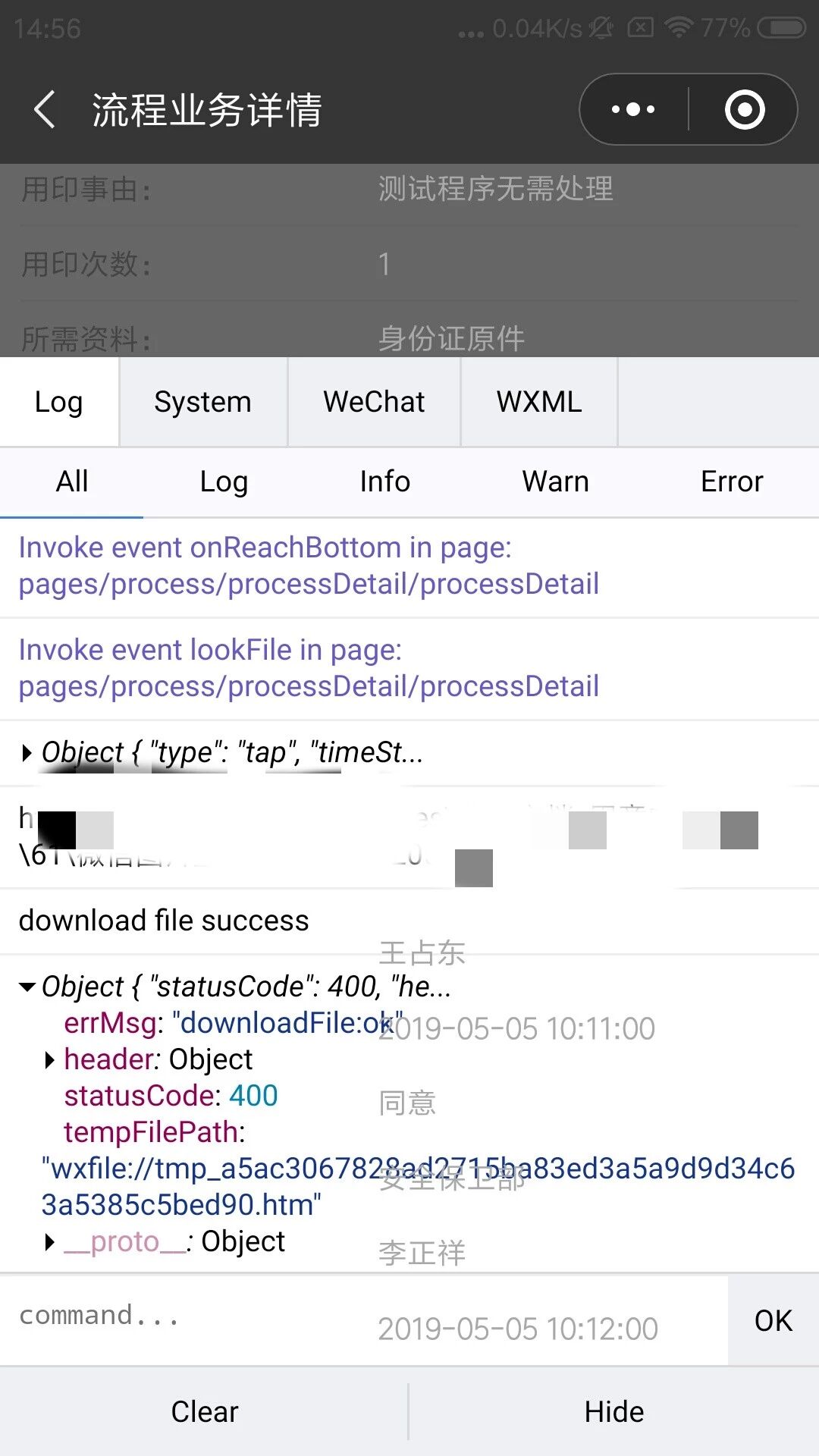 如图, 我在小程序中使用wx.downloadFile下载服务器上的文件,开发工具中还有ios端都可以正常下载,而在安卓端就会出现图2中的错误,statusCode为400,请教各位该如何解决?代码如下: