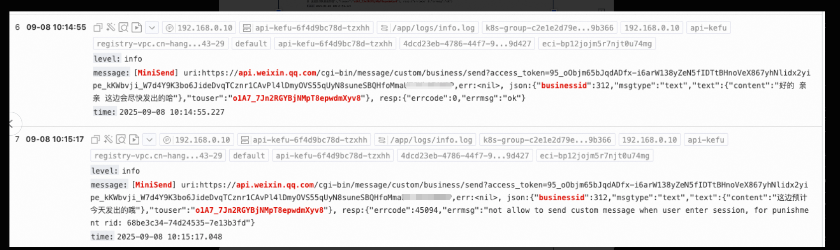 这两个消息除了content不一样,其他都一样,间隔20秒就发不出去了。