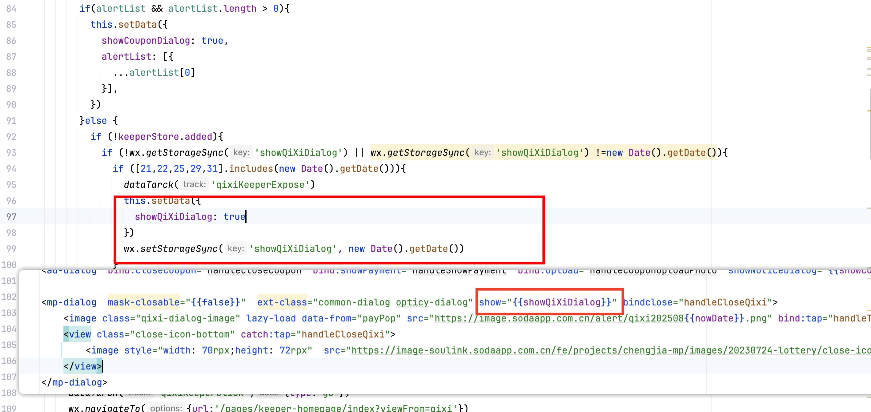 我们的需求是不同日期弹出弹窗,但是测试期间 手动更改系统时间的时候在部分安卓机上面 mp-dialog会一闪而过或者根本不出来,上面的2行代码已经走了 能看到已经为true 但是弹窗没有出来。