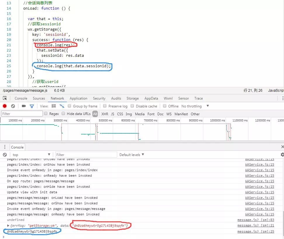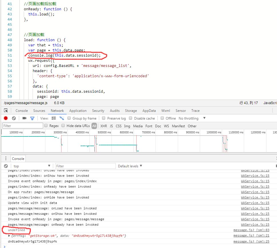 这是我加console的结果,看起来像是load方法先执行了,所以获取不到data.sessionid ? 但setData是在onLoad里写的,在onReady里使用的,按理说应该是先执行onLoad再执行onReady吧。(不过这种情况很少见,大多数是可以正常获取的)