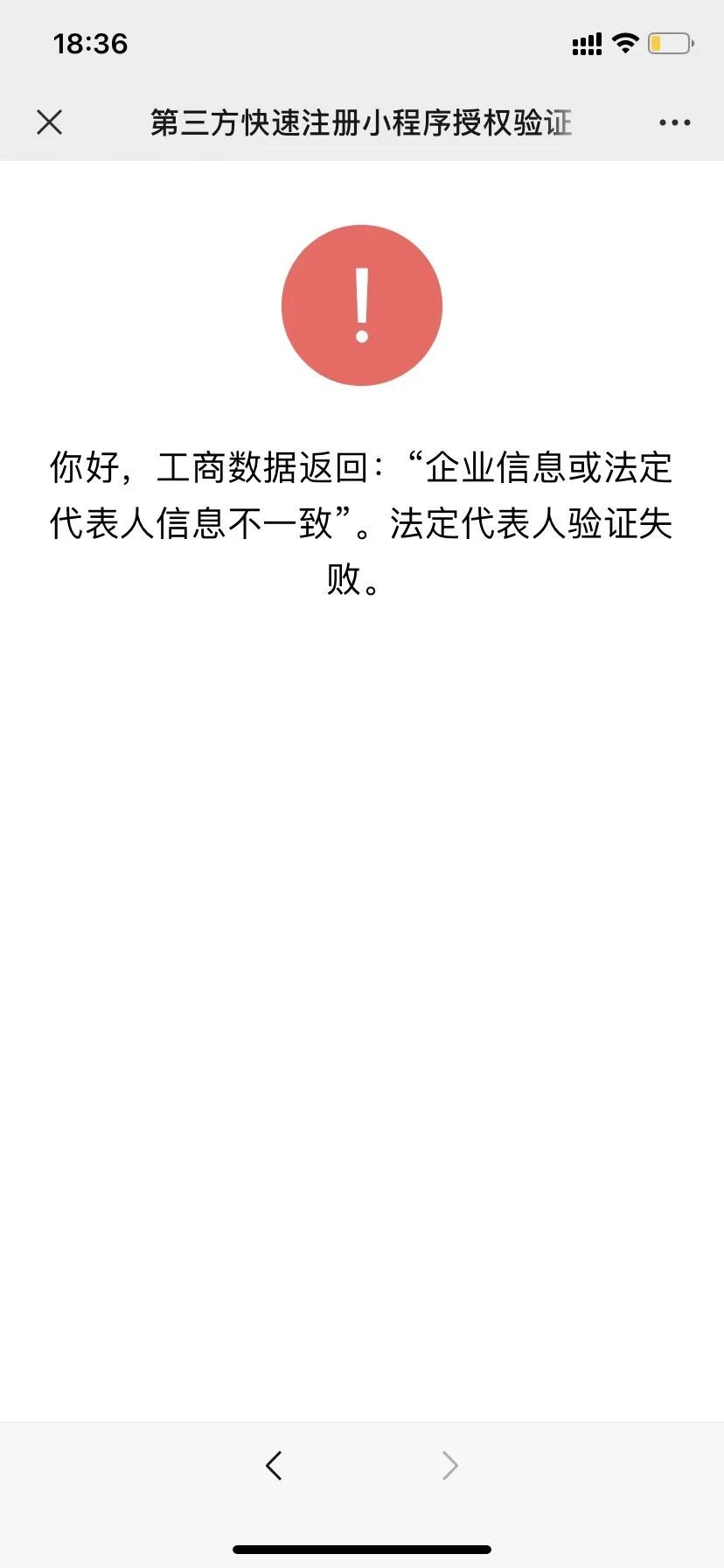 第三方快速注册小程序,企业信息或法定代表人信息不一致?