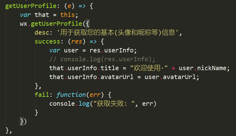 https://developers.weixin.qq.com/miniprogram/dev/api/open-api/user-info/wx.getUserProfile.html#%E7%A4%BA%E4%BE%8B%E4%BB%A3%E7%A0%81