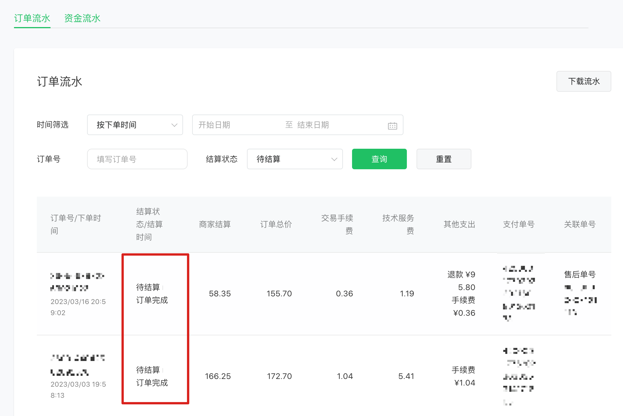 至少半年前的订单了,订单状态已经是完成了,但是钱一直不结算