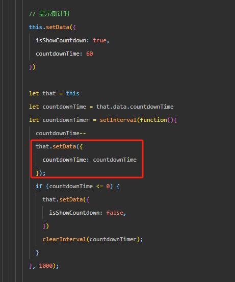请教,一个简单的倒计时,在开发工具上是好的,但是真机调试上,页面上显示的时间不变,始终是初始设定的60秒,是哪儿除了问题呢?小白请教